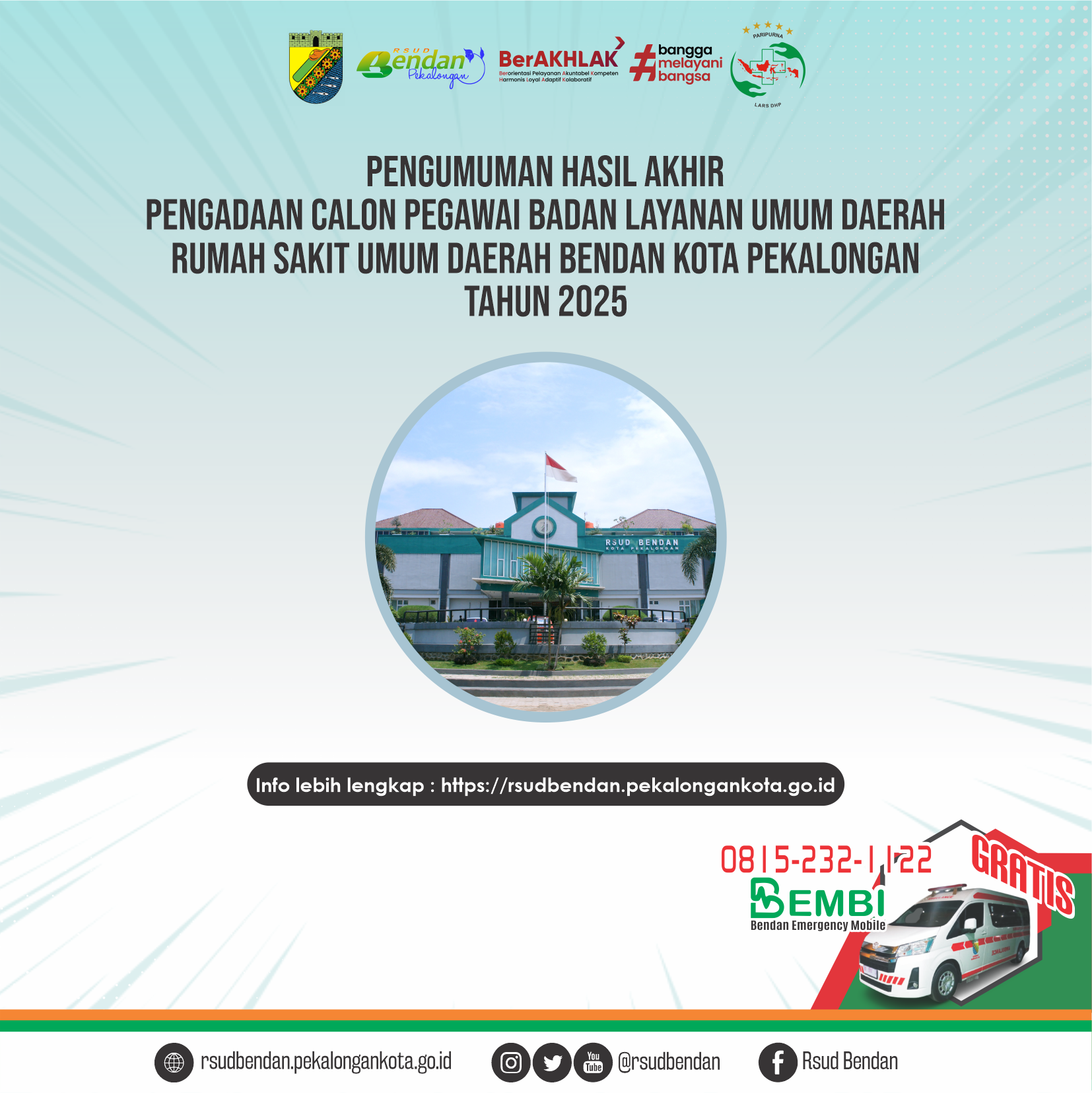 Informasi lebih lengkap unduh file disini : https://rsudbendan.pekalongankota.go.id/download/pengumuman-hasil-akhir-calon-pegawai-blud-oktober-2025.html
