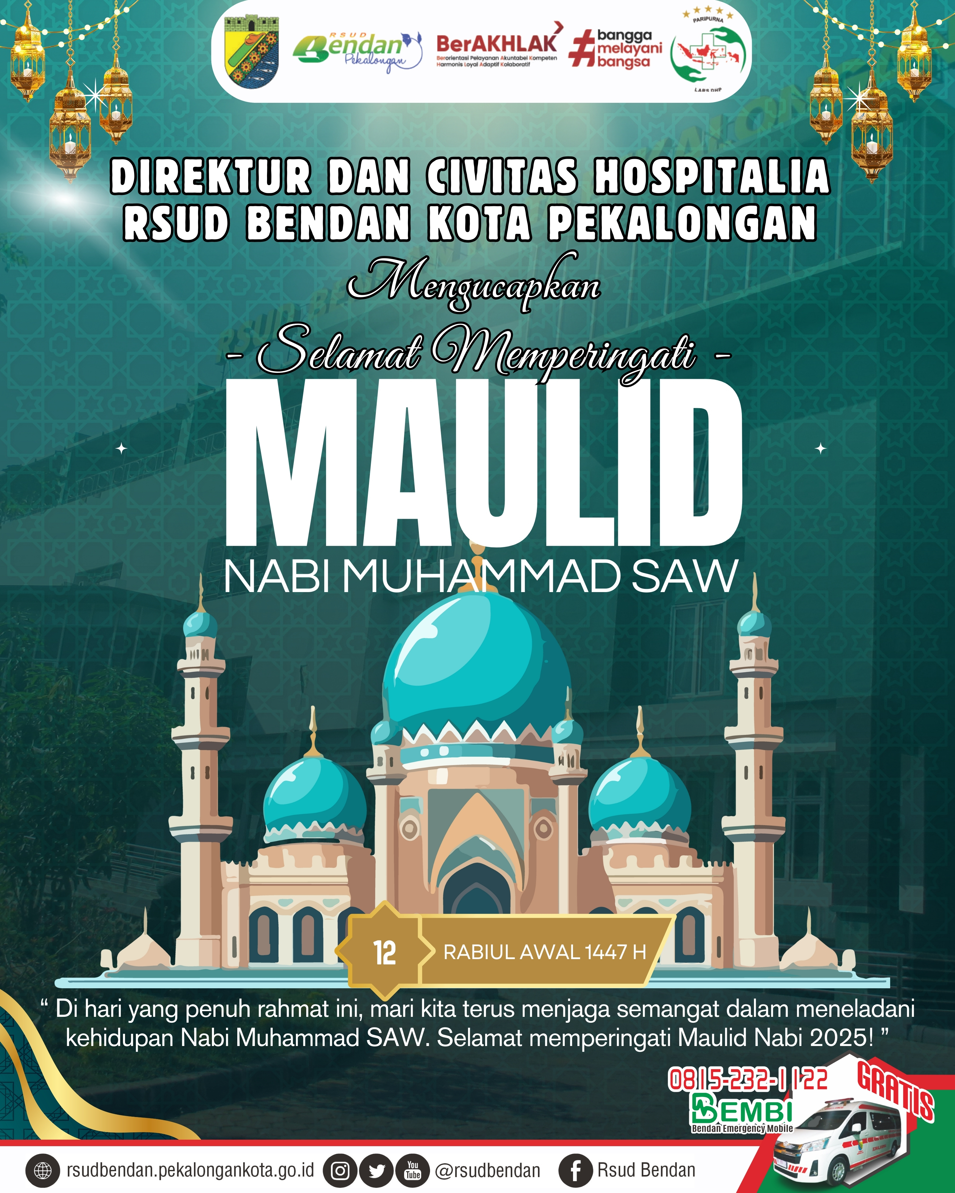 ✨ Direktur dan Civitas Hospitalia RSUD Bendan Kota Pekalongan mengucapkan: Selamat Memperingati Maulid Nabi Muhammad SAW 12 Rabiul Awal 1447 H 🌙 4 September 2025 [15:06:18]