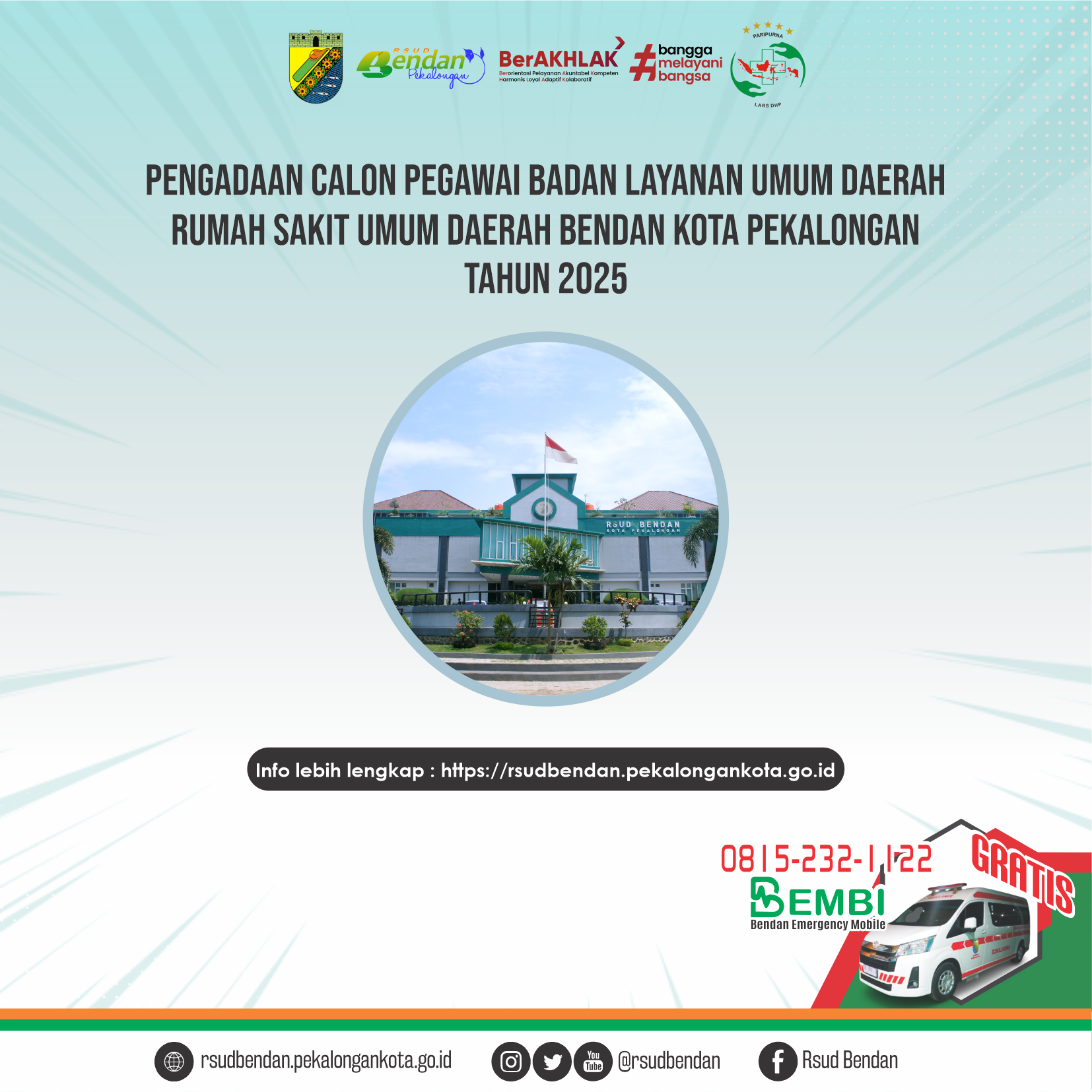 PENGUMUMAN PENGADAAN CALON PEGAWAI BADAN LAYANAN UMUM DAERAH RSUD BENDAN KOTA PEKALONGAN TAHUN 2025 1 Oktober 2025 [11:09:27]