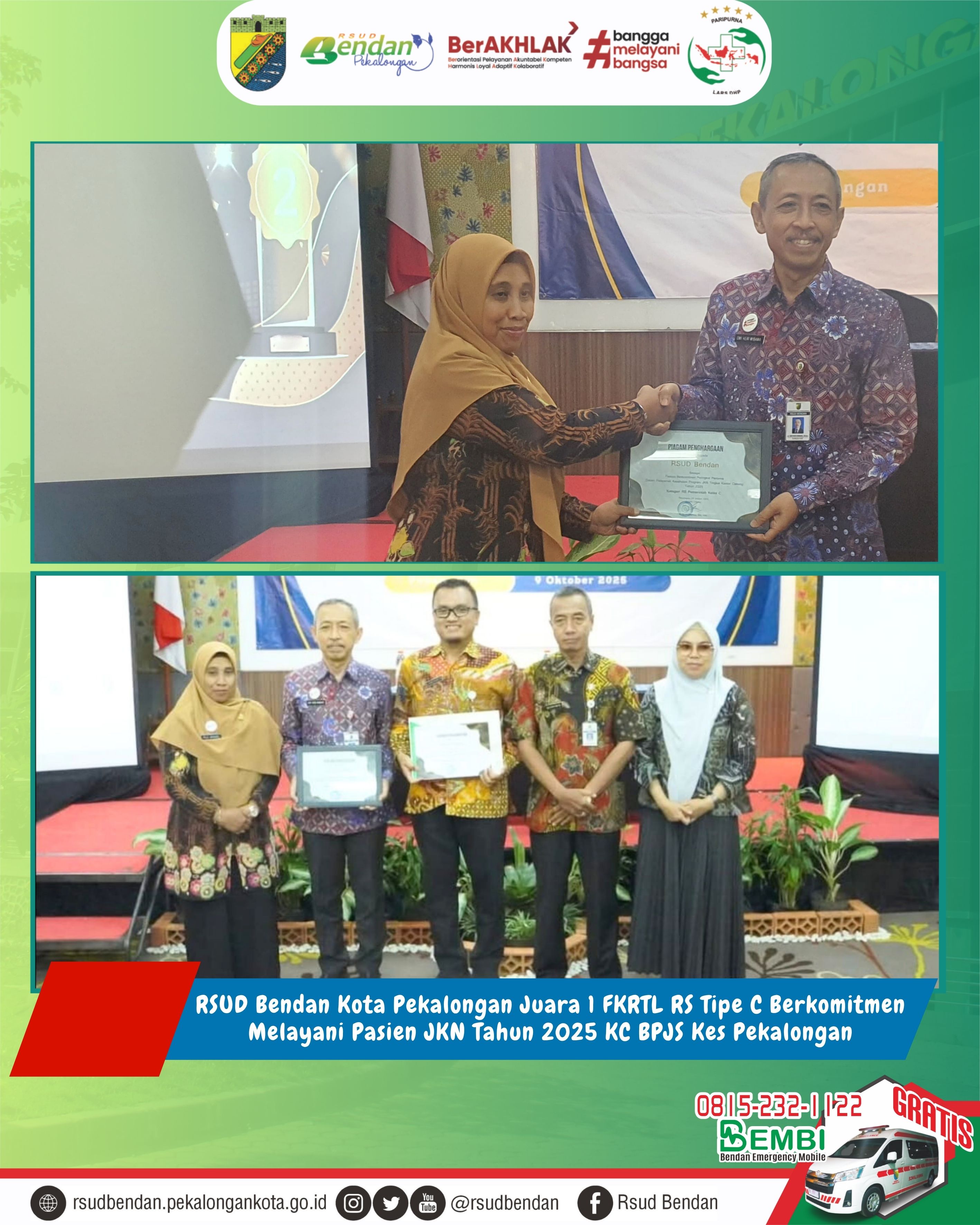 🏆 RSUD Bendan Kota Pekalongan Raih Juara 1 FKRTL RS Tipe C Berkomitmen Melayani Pasien JKN Tahun 2025 🏆 10 Oktober 2025 [08:38:44]